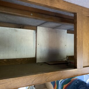 At the same time I made a wood cover for the wiring installed on that dash end cover. Ours was exposed and a bit ugly. I’m guessing that was covered originally and our cover was lost along the way. This new cover is barely visible in that same pic, the edge peeks out on the end of the dash. This one slides down using a concealed mounting bracket so no install holes are visible. In the spirit of Trek, it is made from Red Alder grown and made into lumber right here at our place on the Oregon Coast.