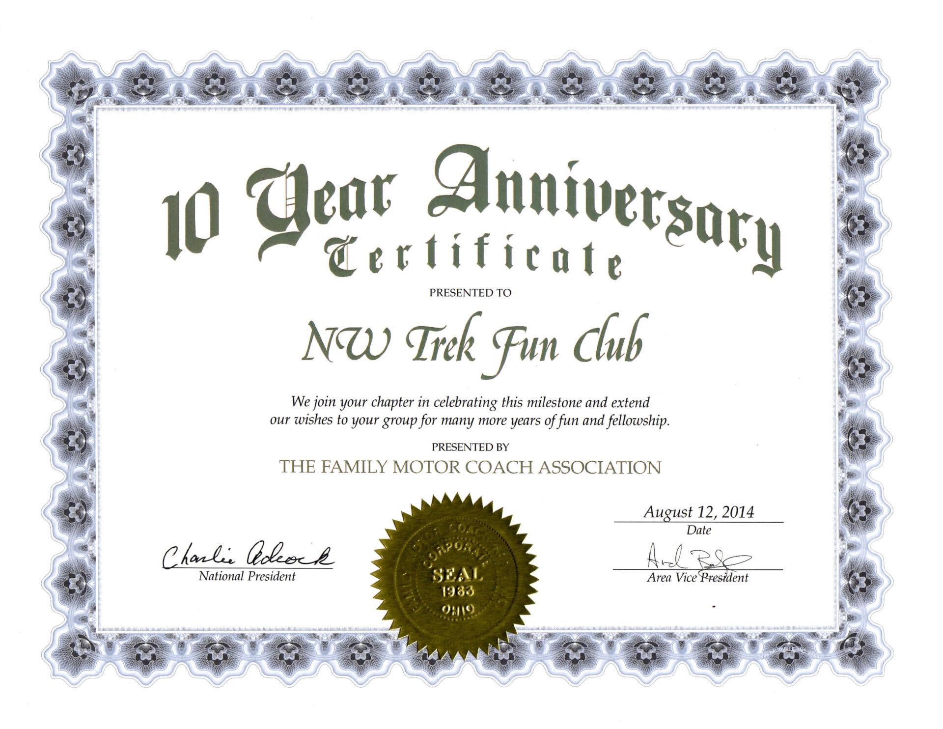 NWTFC 10 yr. certificate NWTFC 10 yr. certificate